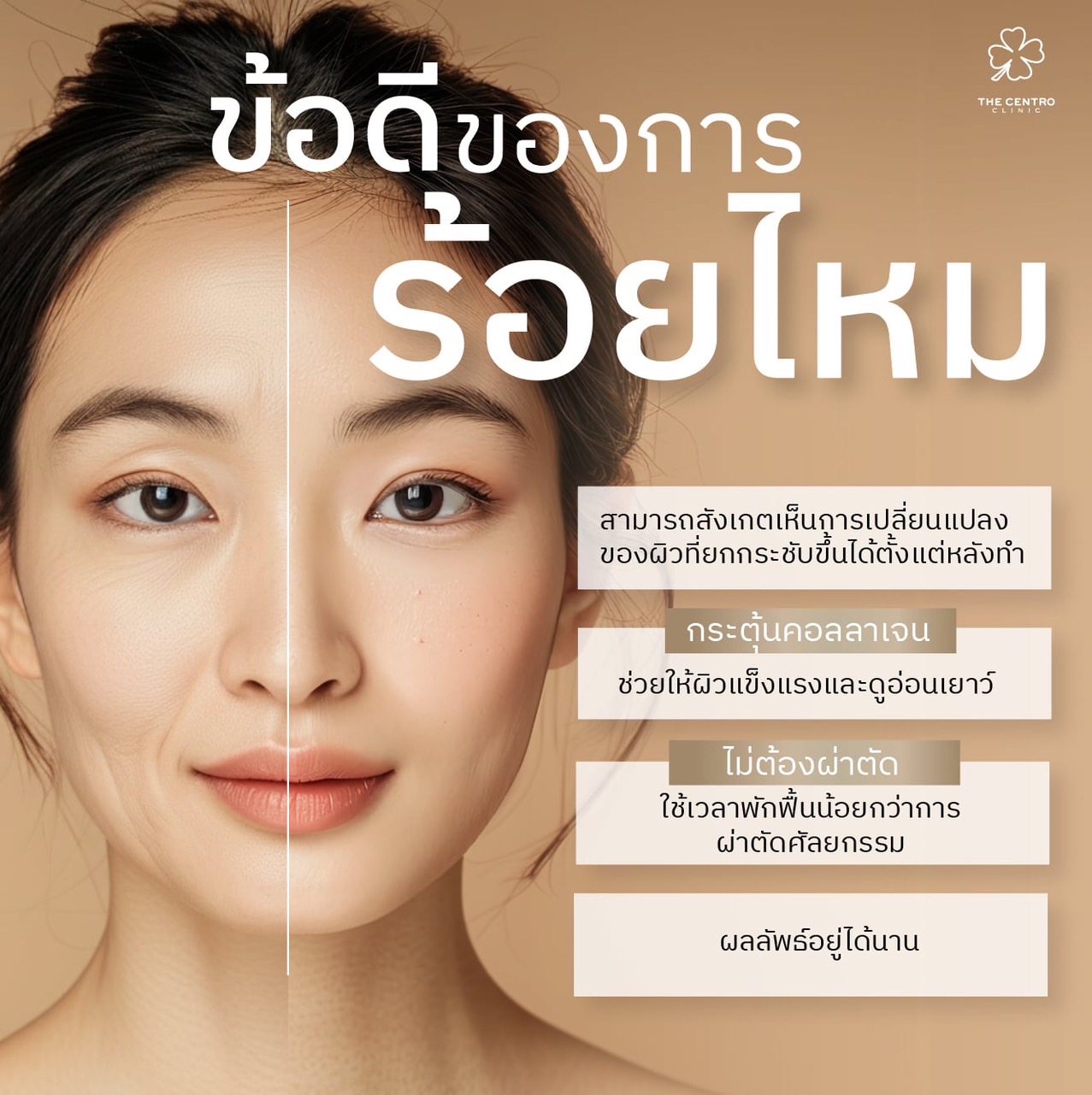 - ช่วยเรื่องผิวหน้าใส: การกระตุ้นคอลลาเจนยังช่วยให้ผิวดูเปล่งปลั่งและเรียบเนียนขึ้น